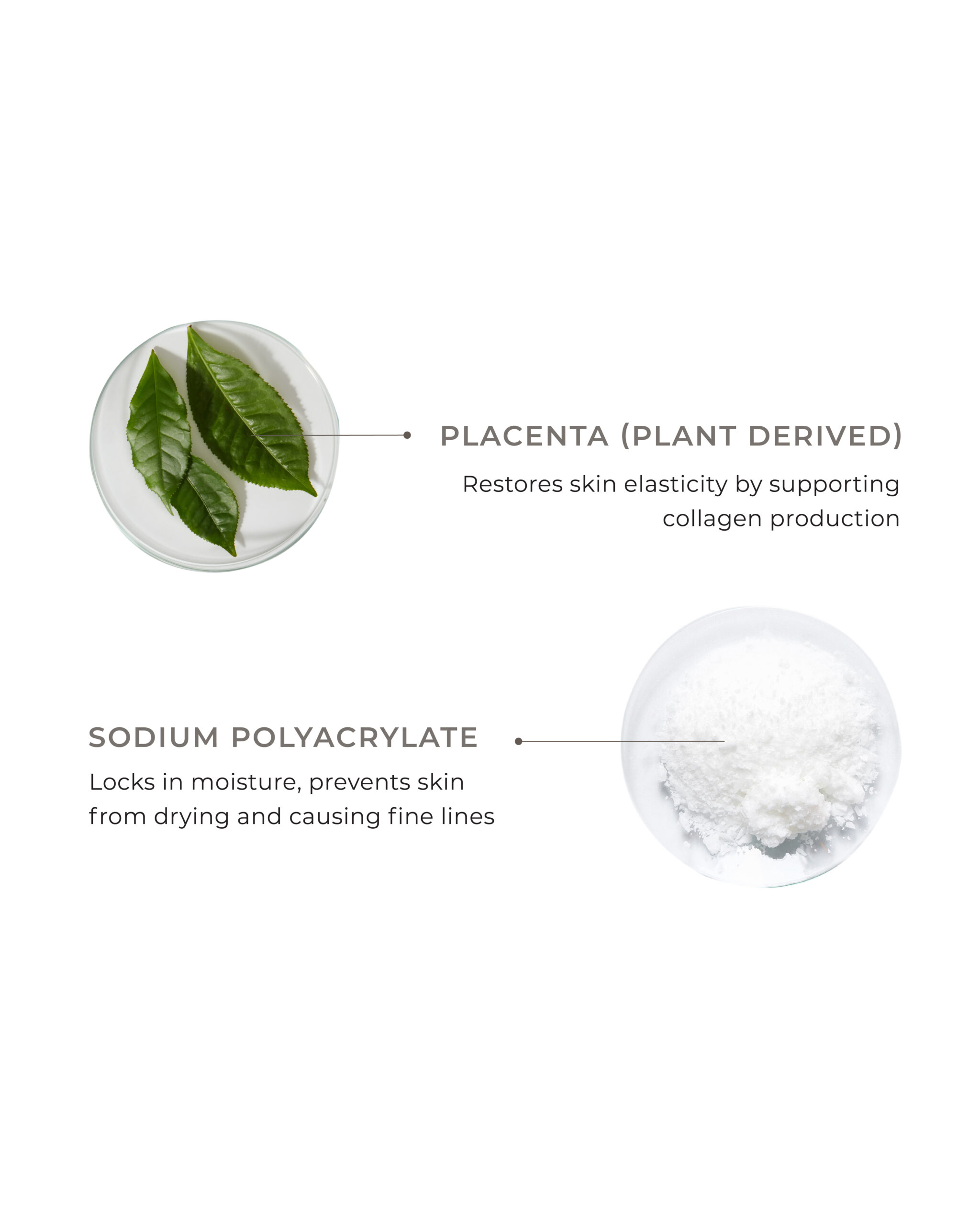 Water, Sodium Polyacrylate, Polysorbate 20, Glycerin, PEG-8, Placenta Protein, Caprylyl Glycol, Disodium EDTA, Diazolidinyl Urea, Cl 19140, Cl 15985, Fragrance