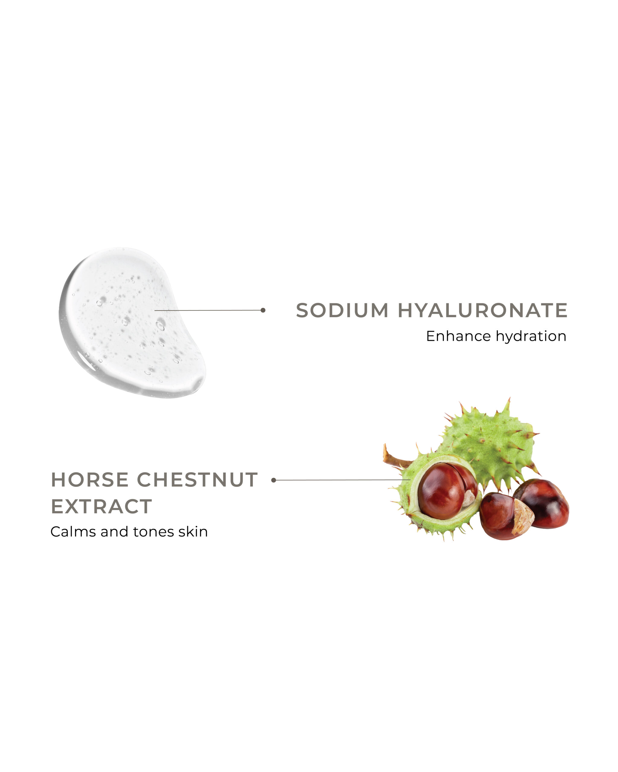Water, Propylene Glycol, Sodium Hyaluronate, Horse Chestnut Extract, Sodium Methylparaben
