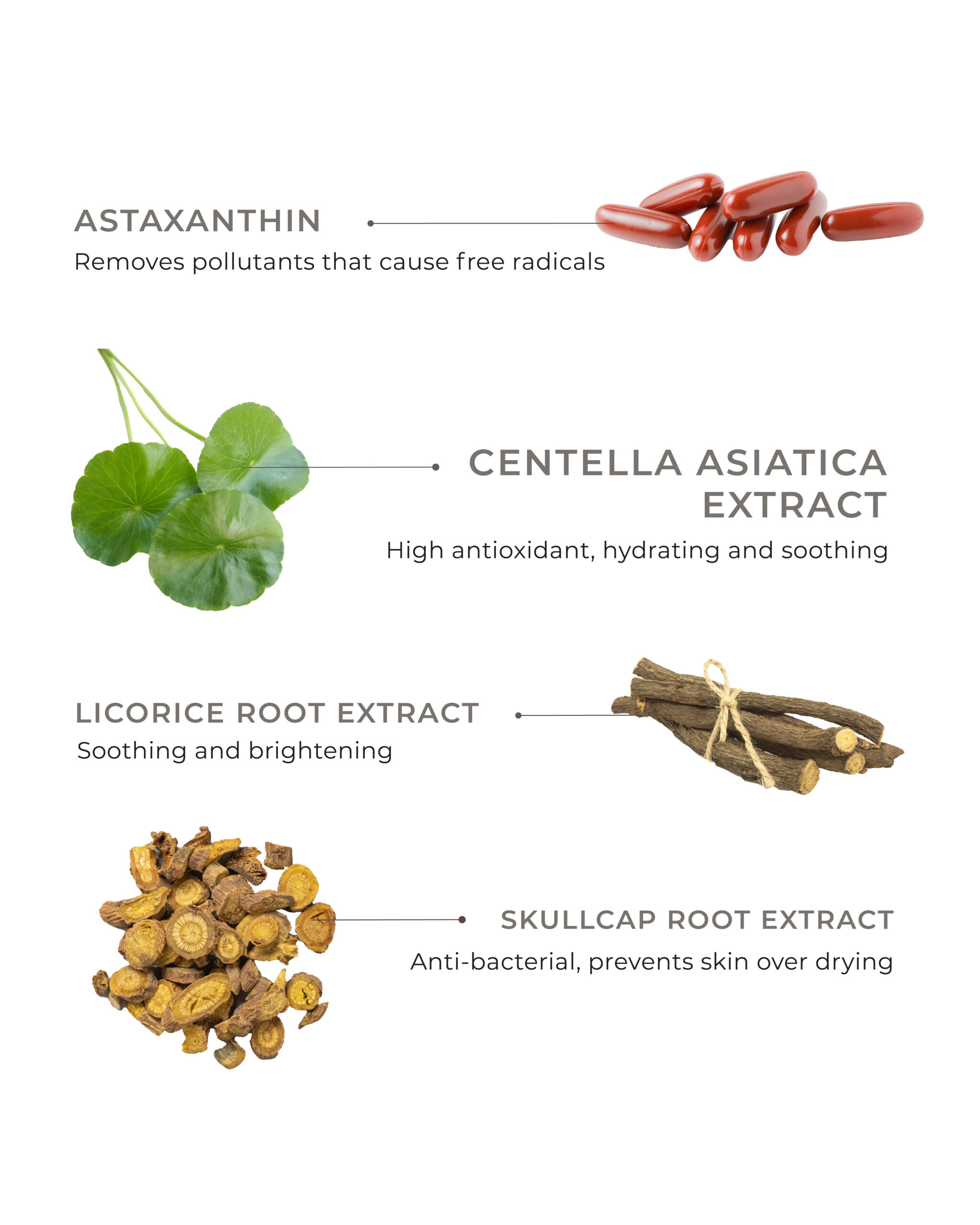 Water, Sodium Cocoamphoacetate, Glycerin, Lauric Acid, Octyldodeceth-16, Potassium Cocoyl Glycinate, Ceteareth-60 Myristyl Glycol, Potassium Hydroxide, 1, 2-hexanediol, Disodium EDTA, Caprlyl Glycol, PEG-60 Hydrogenated Castor Oil, Fragrance, Placental Protein, Butylene Glycol, Caprylic / Capric Triglyceride, Haematococcus Pluvialis Extract, Trisodium Ascorbyl Palmitate Phosphate, Polyquaterium-51, Centella Asiatica Extract, Polygonum Cuspidatum Root Extract, Scutellaria Baicalensis Root Extract, Phenoxyethanol, Glycyrrhiza Glabra Root Extract, Camellia Sinensis Leaf Extract, Rosmarinus Officinalis Extract, Natto Gum
